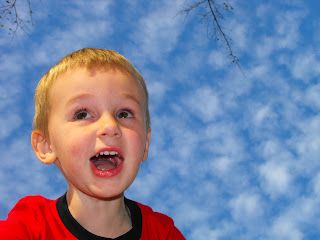 Colton showing me, "Up!" He wanted me to see the sky and clouds. He is 15 months old and very curious about his surroundings right now.