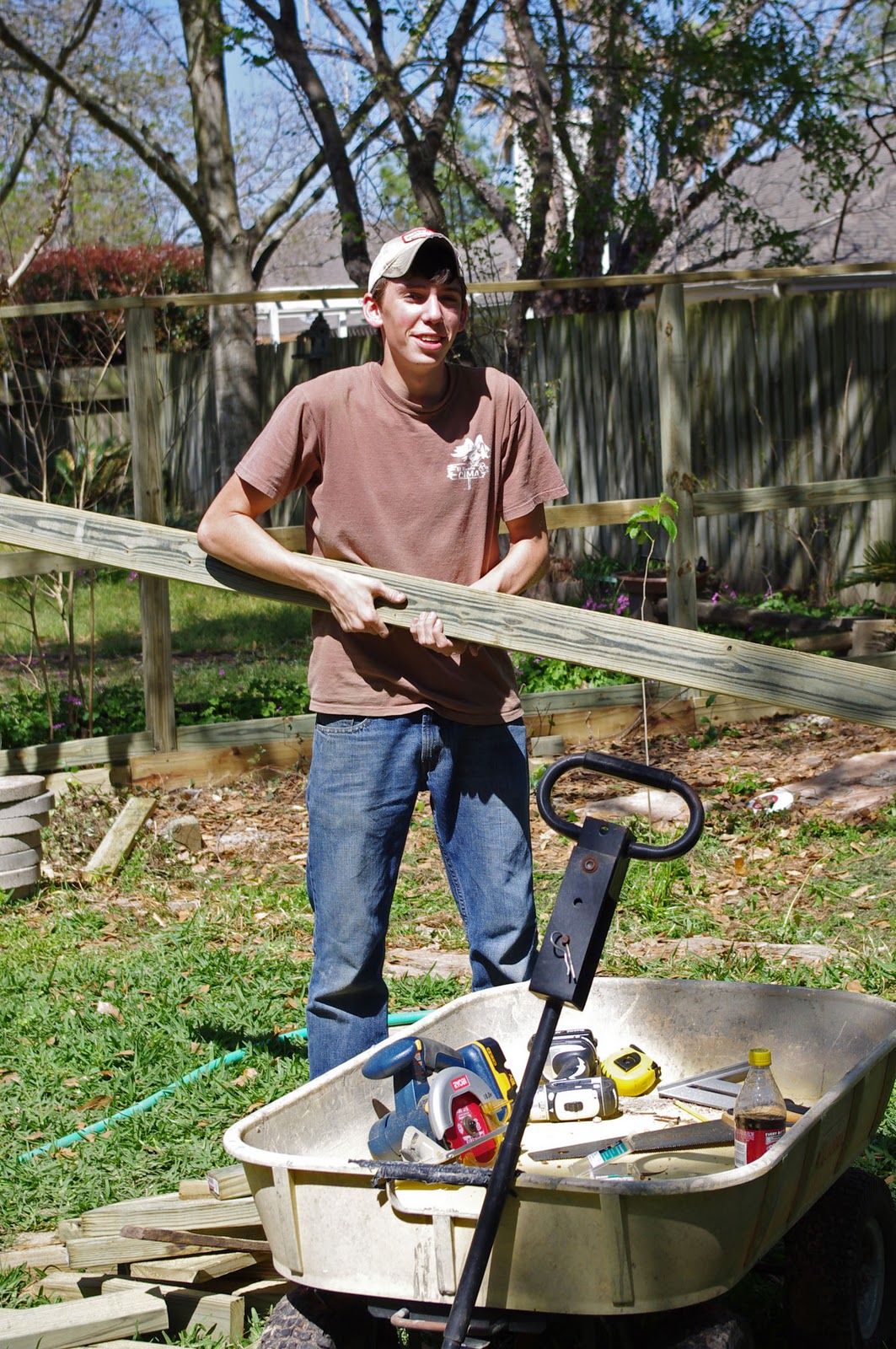 Our fence wouldn't be almost complete without the help of our awesome neighbor's nephew, Tyler. We hire him often for grunt work and he earns his money. I love that kid's work ethic.