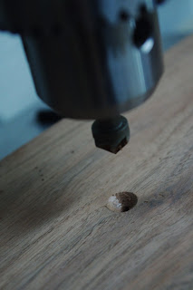 The routed edge turned out great. I then sanded all my rough edges and the surface of my board. Next up I needed to figure out the layout of where all my hooks would be placed. Once that was determined, I wanted to drill 4 holes behind where the hooks would be so I could hide the screws and toggle bolts that would secure my coat rack to the wall.